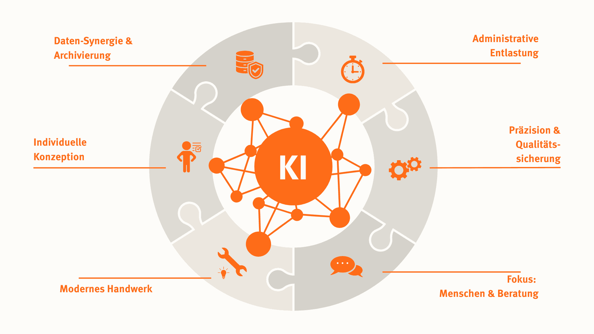 Dank KI gewinnen unsere Mitarbeiter Zeit und Freiheit für die Entwicklung individueller Kundenlösungen. Dort beginnt die Kreativität in unserer Arbeit, dort fängt es an, richtig Spaß zu machen. Wir zeigen Auszubildenden, dass modernes Handwerk heute High-Tech mit Menschlichkeit verbindet und sich stetig weiterentwickelt - langweilig wird es bei uns also nicht. Und da, wo die Konzentration vielleicht doch mal nachlässt und Flüchtigkeitsfehler echte Konsequenzen haben, unterstützt die Technik.